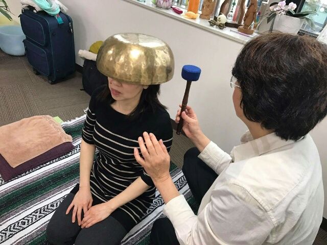 仕上げはシンギングボールを被っていただいて音を響かせます。