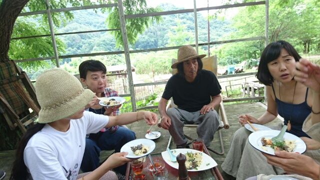わらぴお食堂のオーナーカップルと一緒にわいわいランチ。